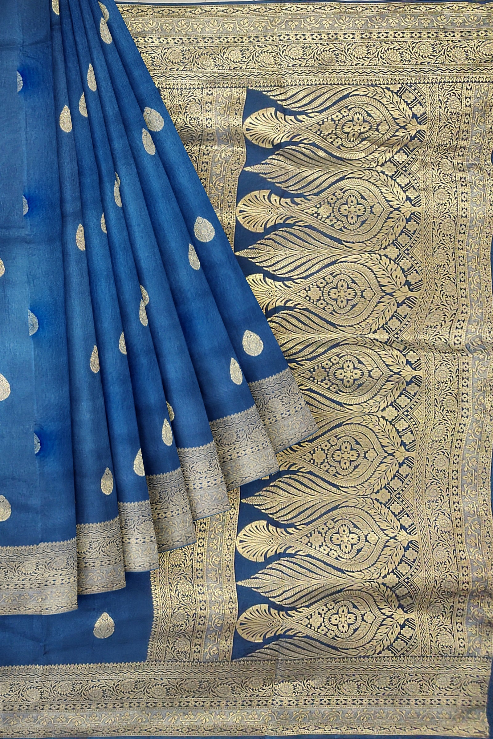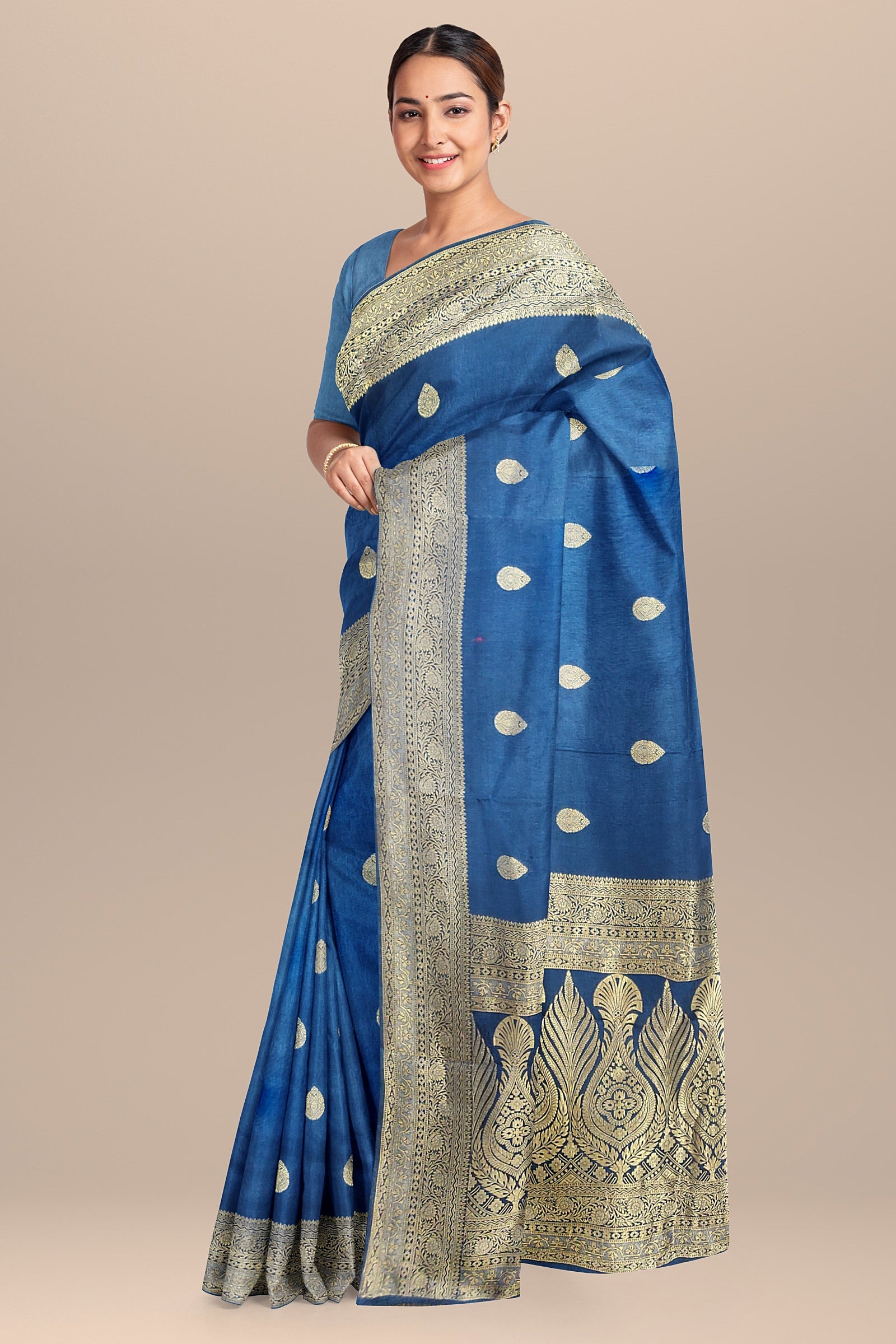 BANARAS SILK: Charming Firoza-colored Banaras dola silk saree